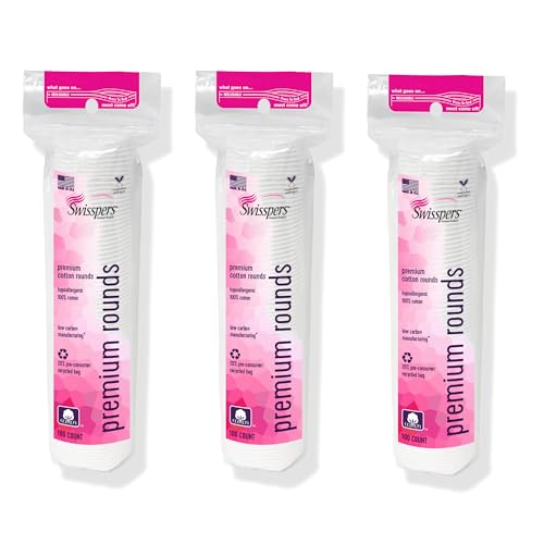 0% off Swisspers Premium Cotton Rounds – 100 Count (Pack of 3) - 100% Pure Cotton - Soft, Absorbent, Hypoallergenic Pads for Makeup Removal, Skincare, Baby Care and Facial Cleansing - Lint Free 0% off